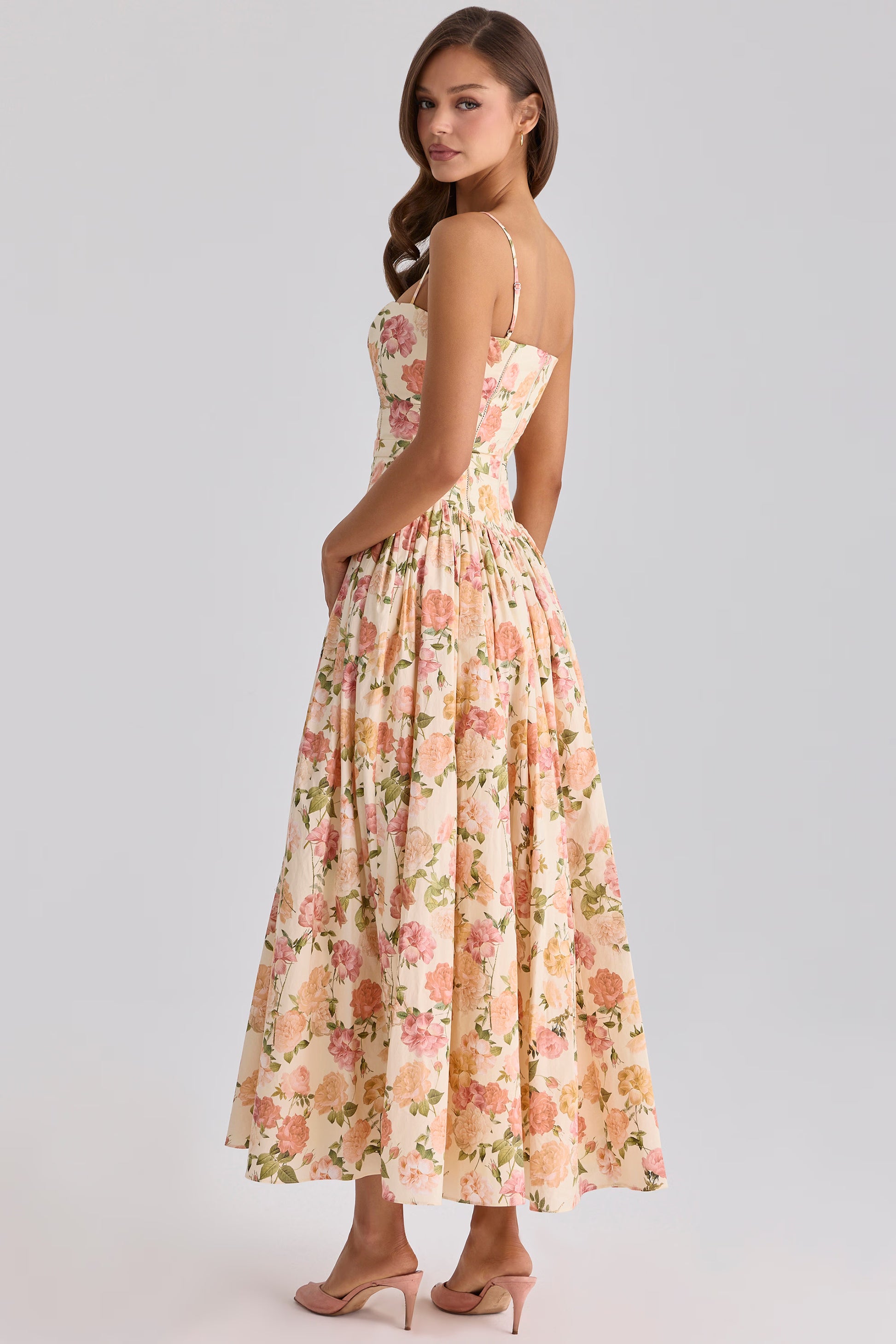 Sukienka Isabella to idealna romantyczna sukienka letnia, wykonana z miękkiej, elastycznej bawełny. Dopasowany gorsetowy top podkreśla sylwetkę i subtelnie eksponuje dekolt.